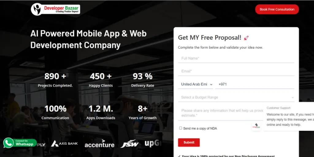 Developer Bazaar Technologies, founded by Arpit Vaishnav and co-founder RM Mishra in 2016, is a top-ranked mobile app and web development company that specializes in turning concepts into breathtaking realities and making a positive impact. This company has delivered and completed 890+ projects and worked on 50+ MVP and custom solutions. App development is its main specialization and works around AI App development, doctor App development, health and Fitness App development, OTT platforms, and food delivery App development. Interactive Figma design, consistent communication rate, and detailed user epic story are some of the key features that make this company unique from other IT-specialized companies.