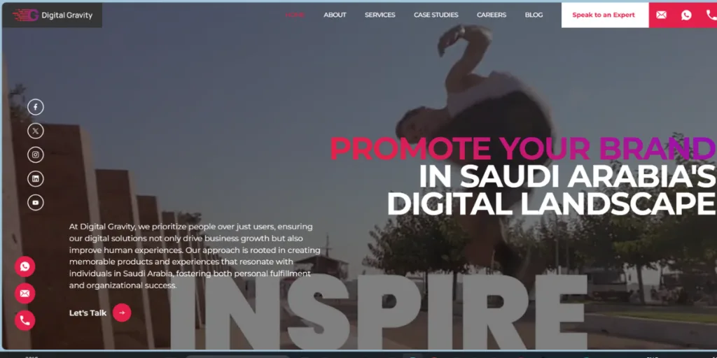 Digital Gravity KSA is a design and top web development agency in Riyadh, Saudi Arabia, and supplies reasonable and affordable responsive services of web design. Founded in 2018, this company provides marketing solutions of web design and web development to its clients by taking a strategic approach and assisting businesses in maintaining a competitive online establishment. Digital Gravity KSA has an expert team of digital marketers, graphic designers, mobile app and web designers, and developers and provides its services to establish the brands and lift them from bottom to top.