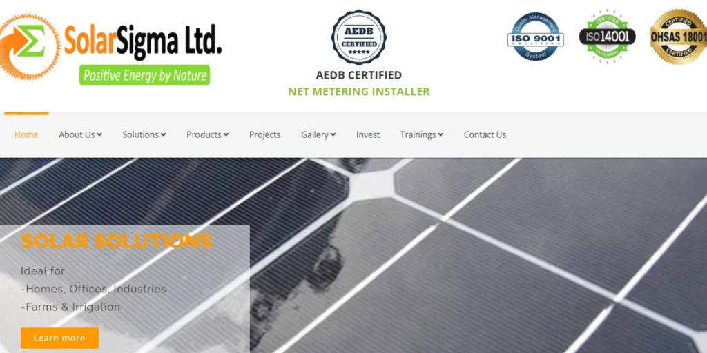 In Lahore, Solar Sigma Limited is dedicated to advancing sustainable energy solutions. They provide comprehensive solar energy services, including consultation, installation, and supervision. Delivering premium solar panels and solar energy systems in Lahore is what Solar Sigma is known for. For various industries, they provide tailored solutions that guarantee maximum energy savings and lower utility expenses.